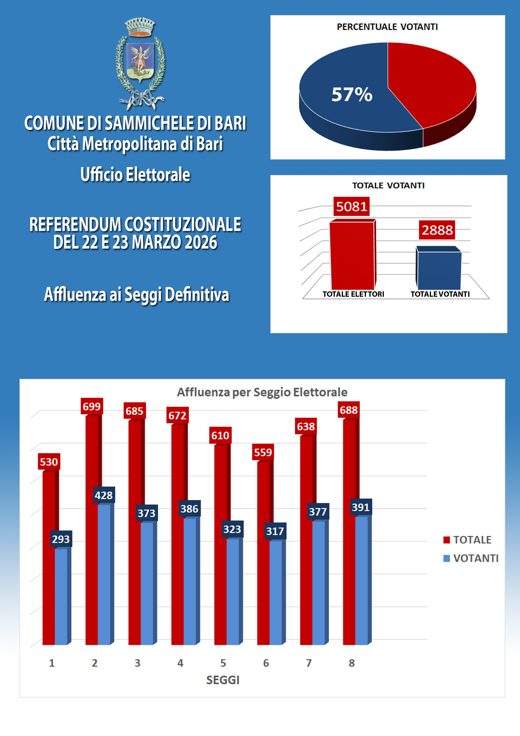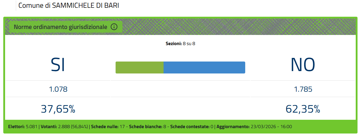 REFERENDUM COSTITUZIONALE DEL 22 E 23 MARZO 2026: AFFLUENZA DEFINITIVA E RISULTATI FINALI